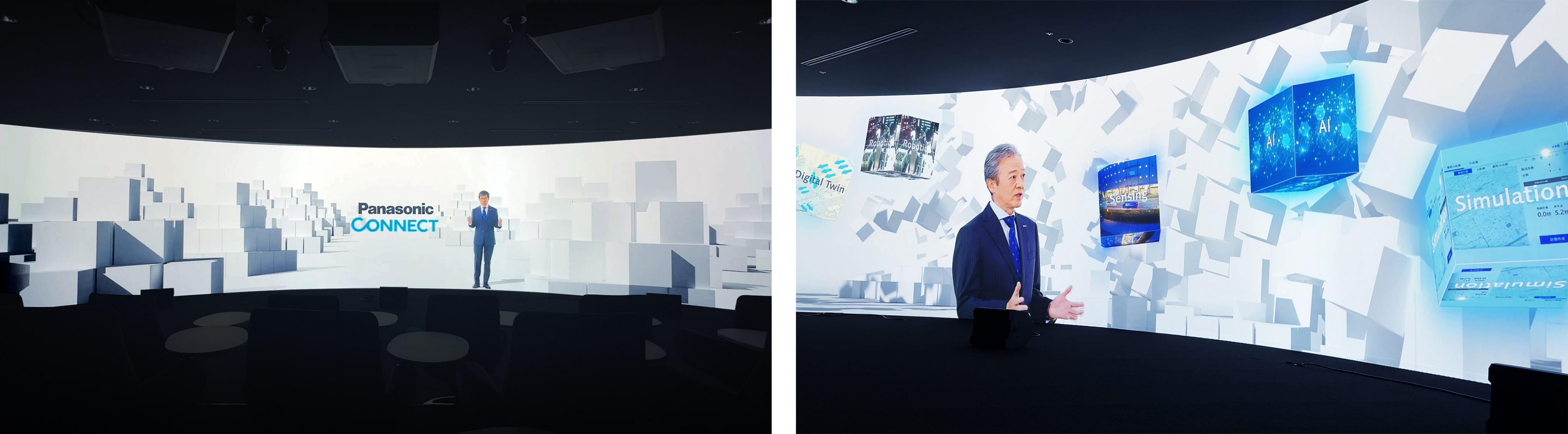 プレゼンテーションエリアでは「つながれば、ひらく」をテーマに、イマーシブなシアター映像コンテンツを制作。各事業領域でのソリューション概要をわかりやすく解説するとともに、それらがブランドパーパスとカルチャーに下支えされていることを伝え、パナソニック コネクトが「最高の共創パートナー」であることを印象づけました。